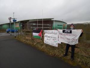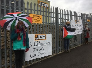 o A simultaneous protest was held in Sheffield at the main dealership for JCB in the north of England, TC Harrison JCB. Banners read: “Anthony Bamford: working with Israel to demolish Palestinian homes” and “Anthony and Carole Bamford: Why don’t you care about Palestinian children?